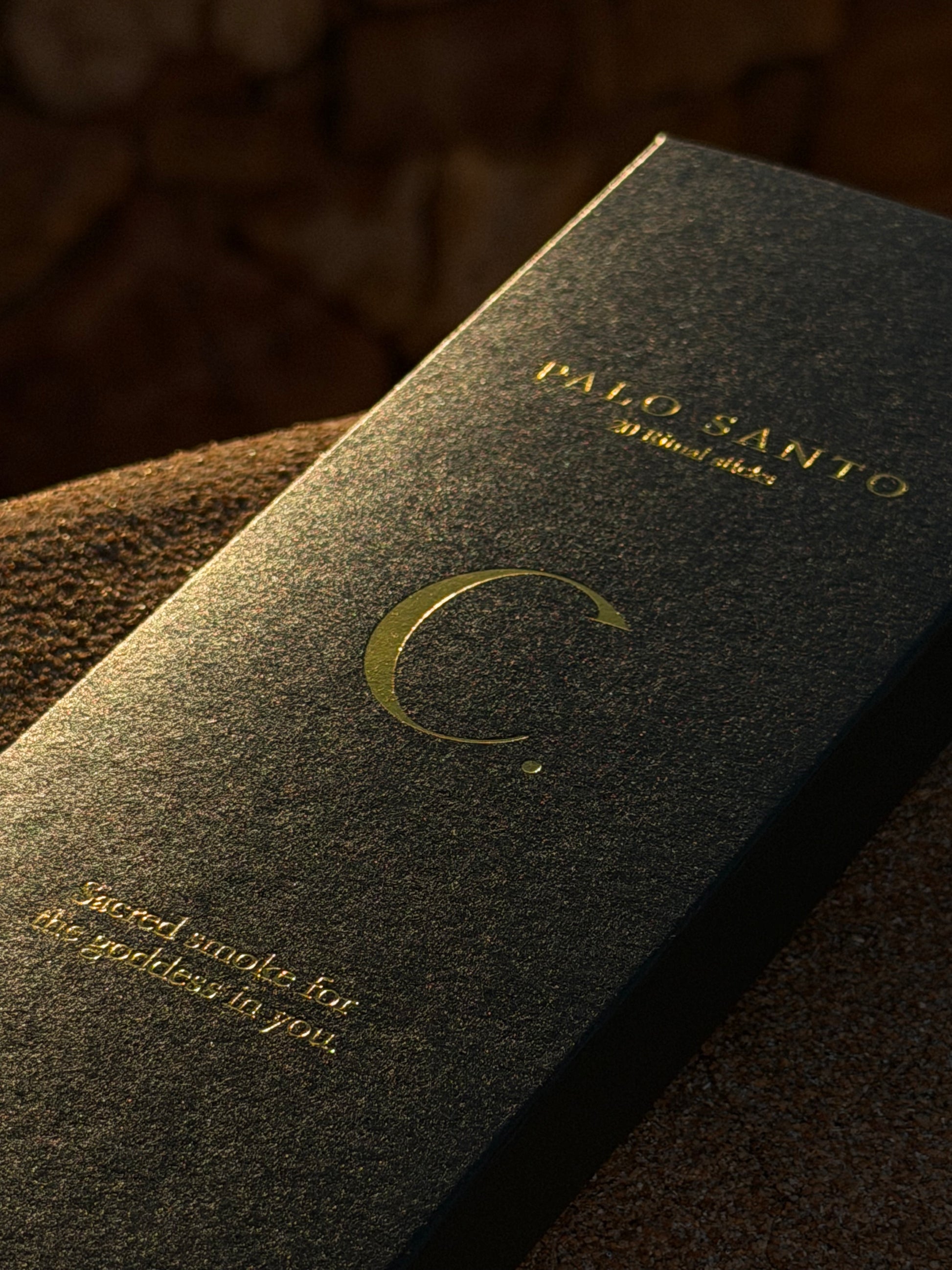 Our Palo Santo incense is hand-rolled in India using a refined blend of rare herbs, flowers, resins, honey, and essential oils. Let its gentle smoke cleanse your space and calm your spirit — a quiet moment for the goddess within.
